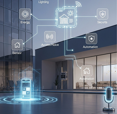 End-to-end smart building and smart home solutions designed to enhance comfort, efficiency, and security. Our systems integrate lighting control, HVAC management, energy monitoring, access control, security sensors, and automation scenarios into one intelligent platform.
